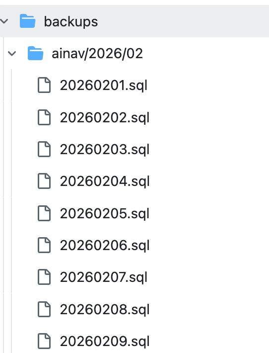 • 文件存储:备份导出的 .sql 文件按日期存储在 backups/ 目录下,并自动 commit/push 回仓库。