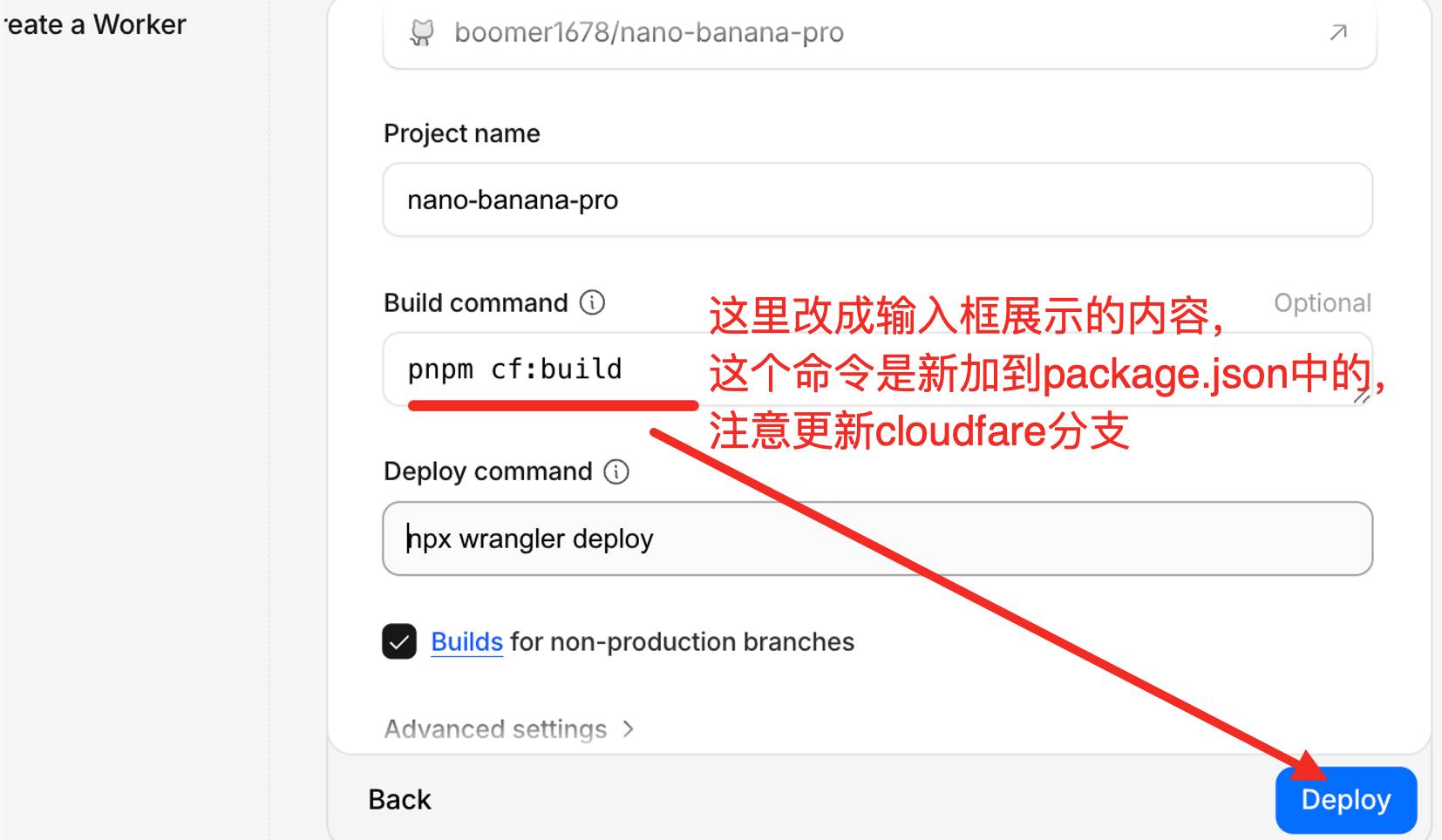 如果你要部署非main分支的代码到Cloudflare上请阅读下面这段教程,否则直接略过直接往下看