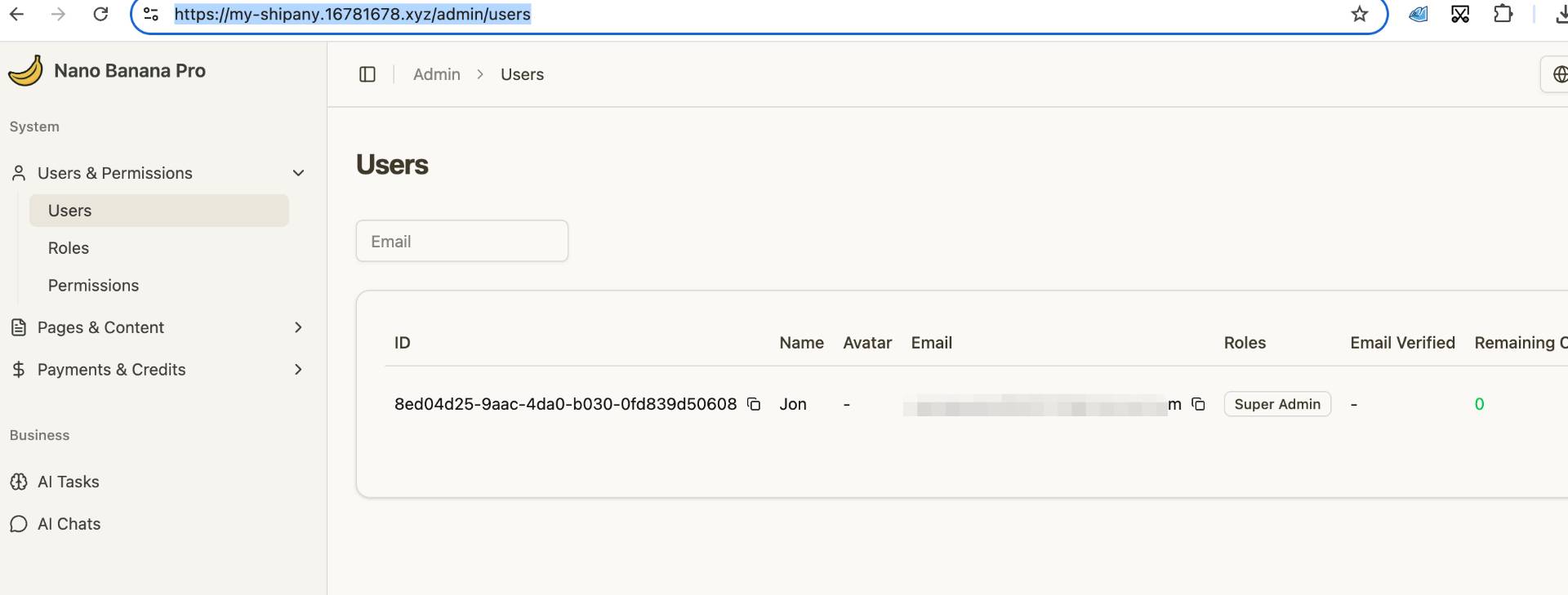 保存后,提交到git触发自动部署,然后再次访问项目,看下admin能不能正常进入,例如:https://my-shipany.16781678.xyz/admin/users