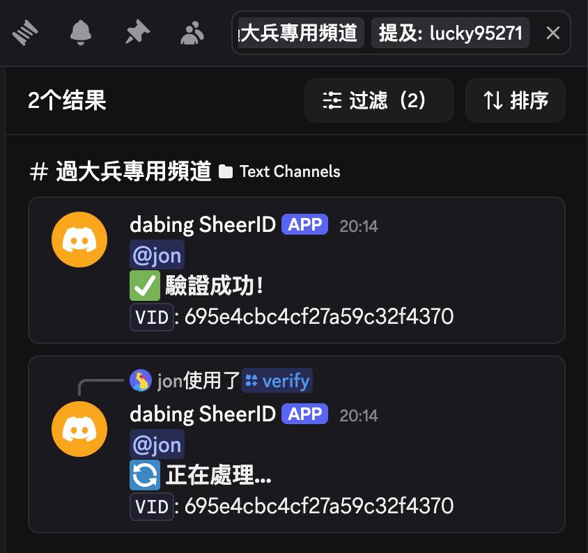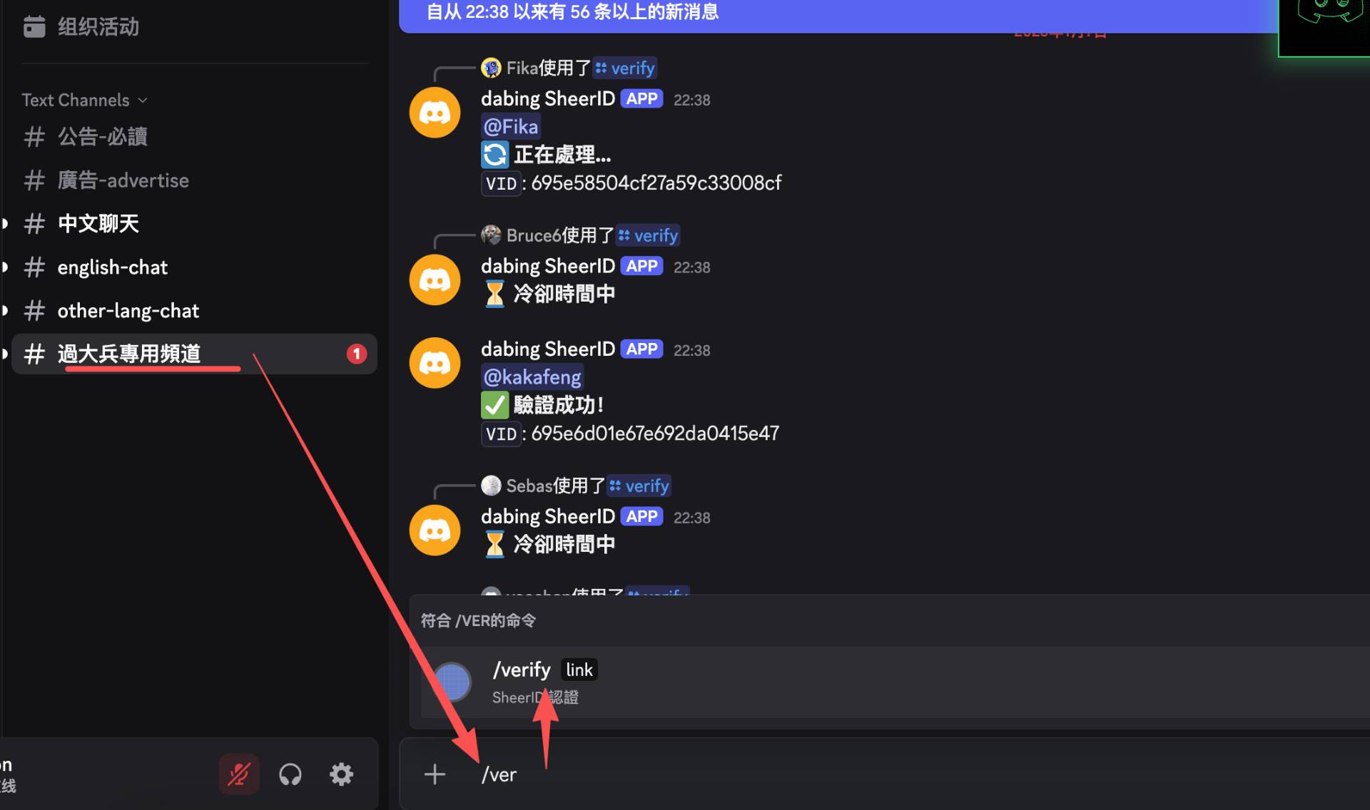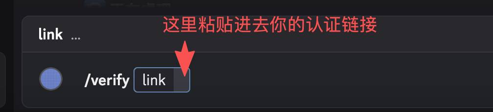 进入大兵专用频道,输入/verify «你的认证链接»,