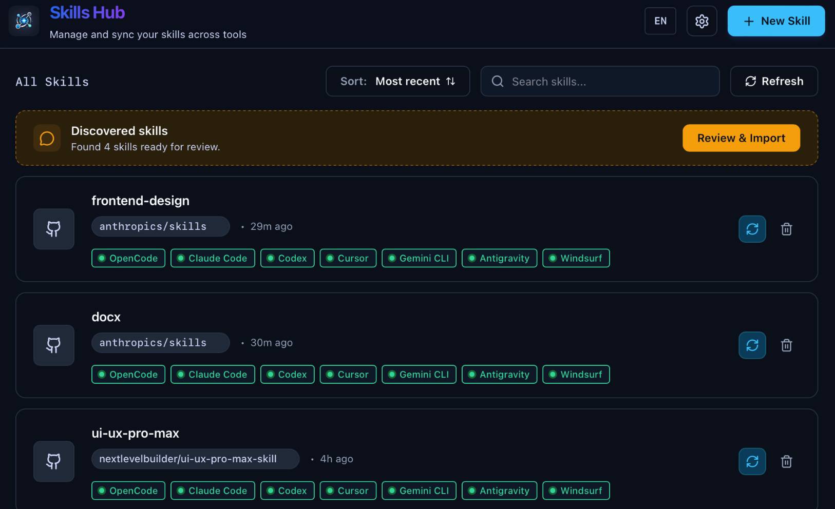 首款可视化 Skills 神器开源,Claude/Cursor/Codex 一键同步 https://github.com/qufei1993/skills-hub
