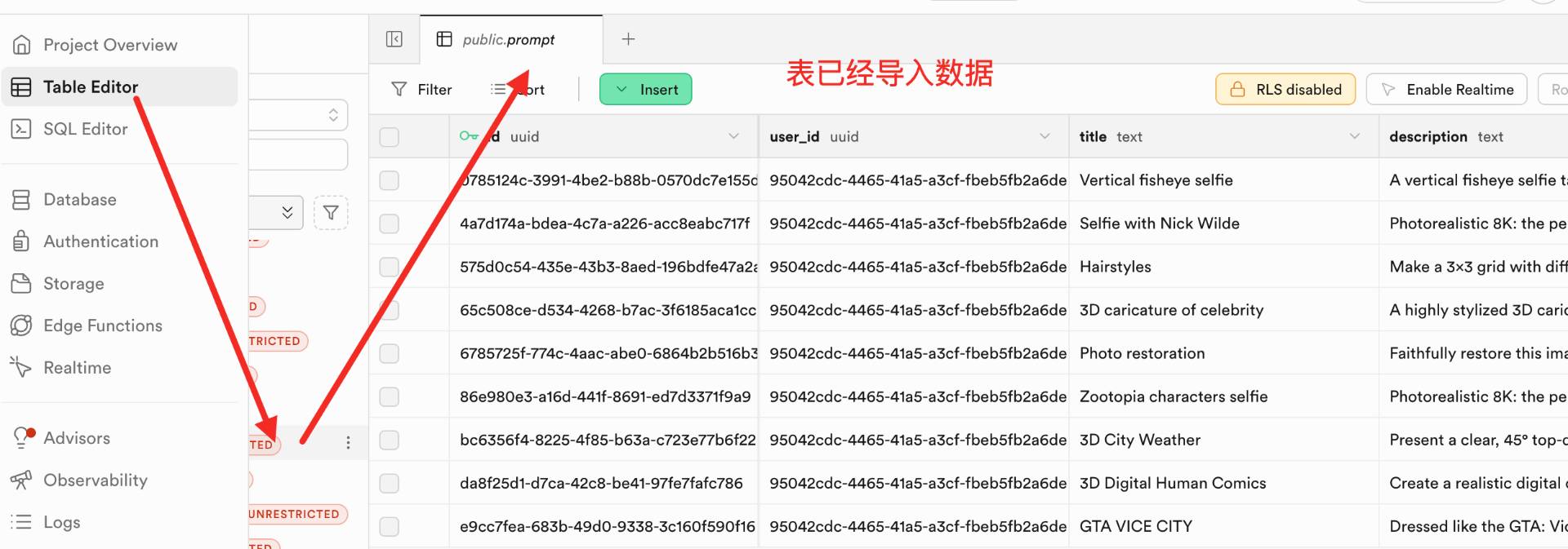 粘贴到Supabase