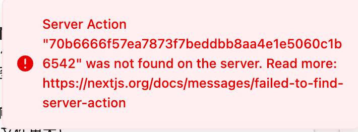 提示我:Server Action "70b6666f57ea7873f7beddbb8aa4e1e5060c1b6542" was not found on the server. Read more: https://nextjs.org/docs/messages/failed-to-find-server-action