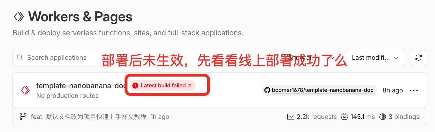 这时候去Cloudflare上查看下最新部署是否成功,多半是出错了;