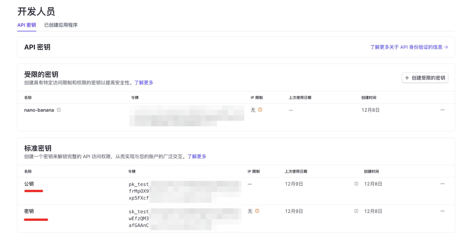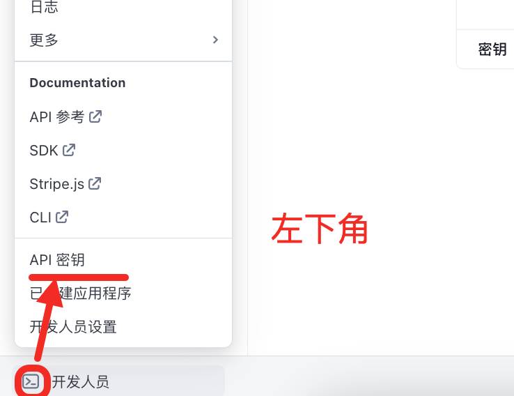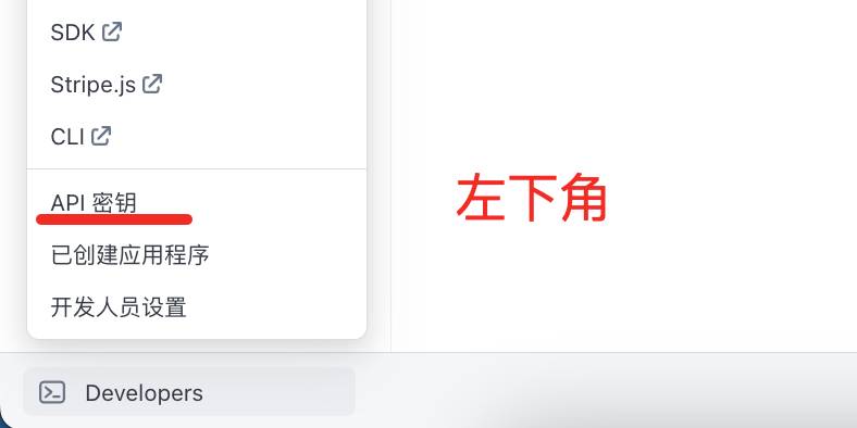 依次选择 Developers -> API keys -> 标准密钥,依次将公钥密钥复制粘贴到http://localhost:3000/admin/settings/payment。