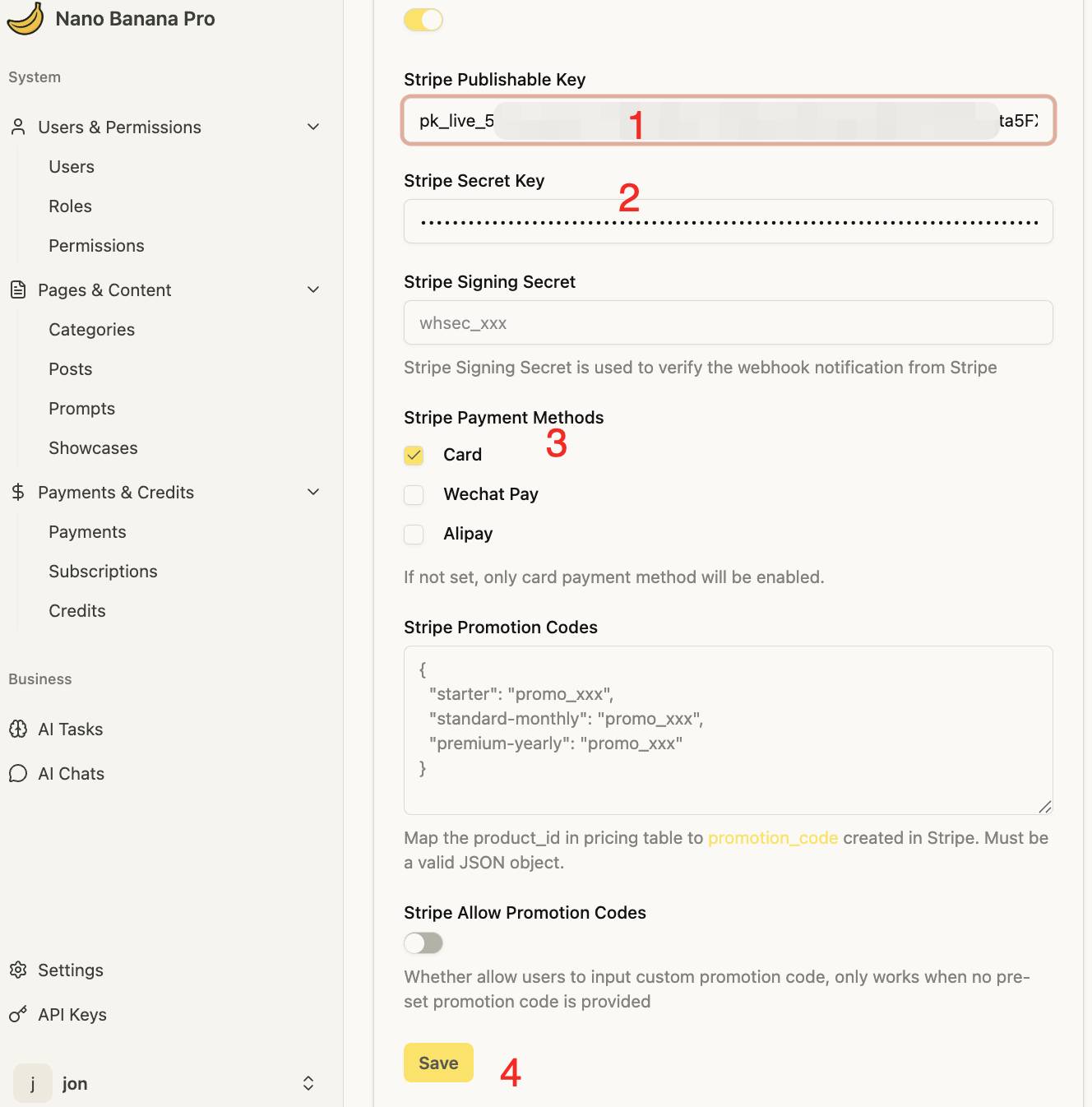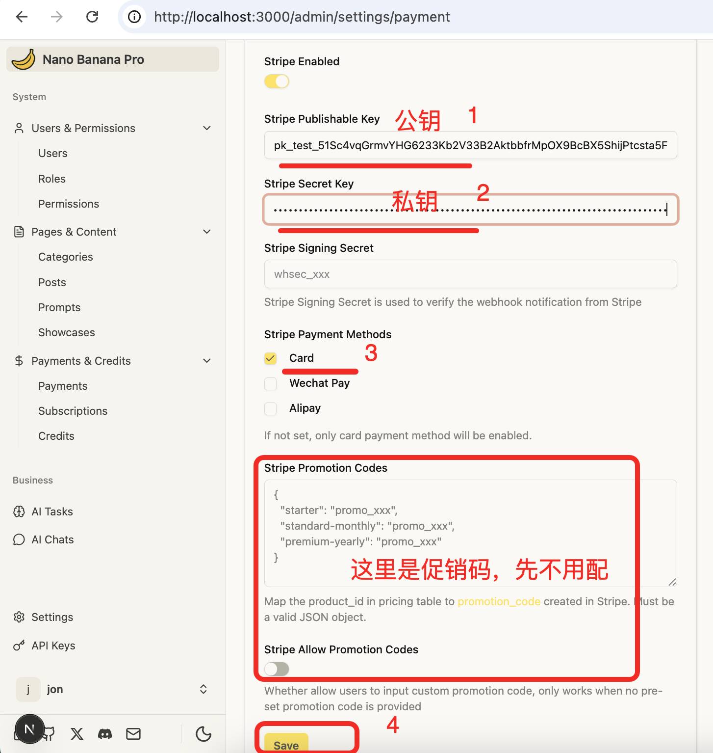 然后将其粘贴到 http://localhost:3000/admin/settings/payment