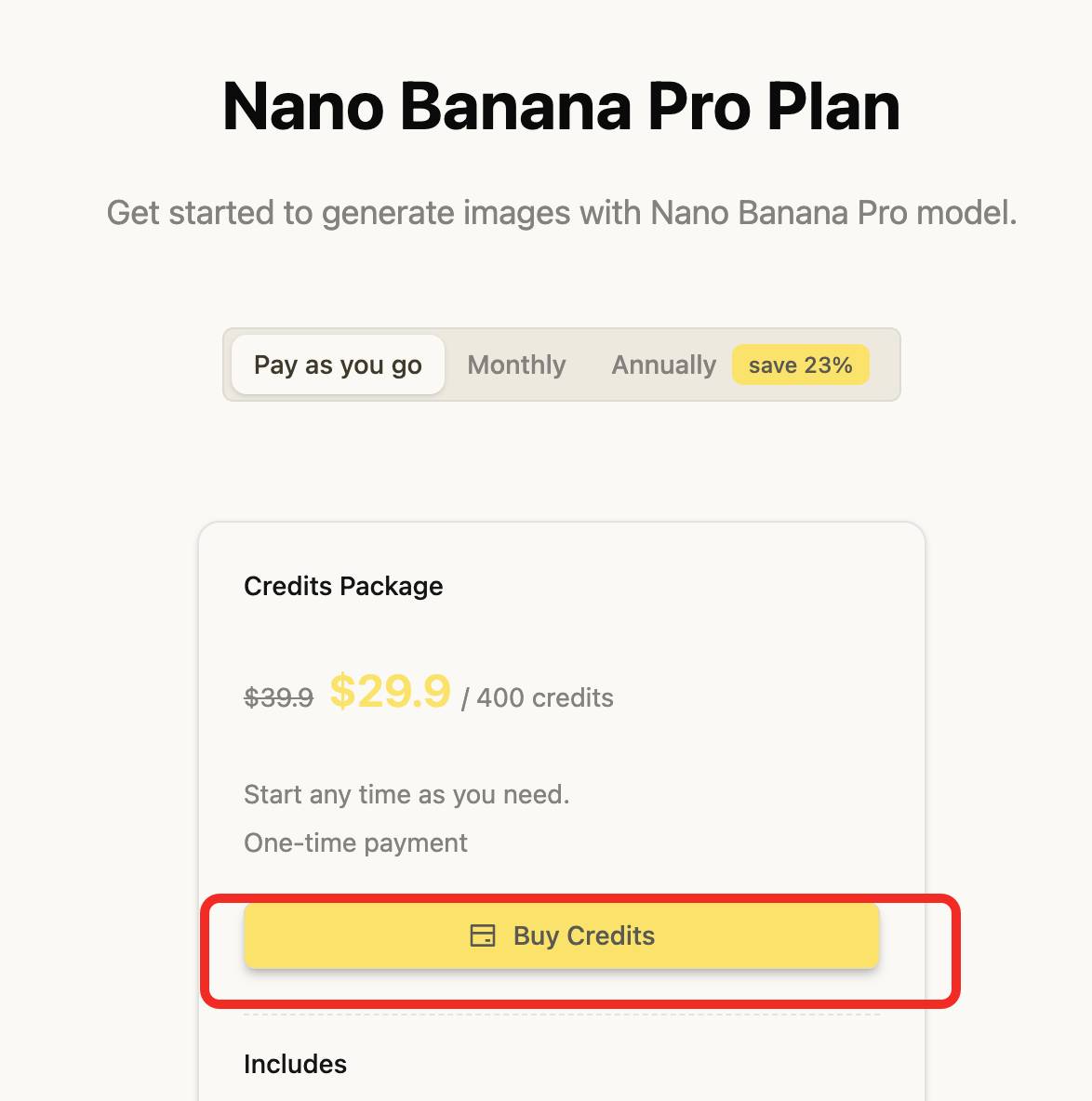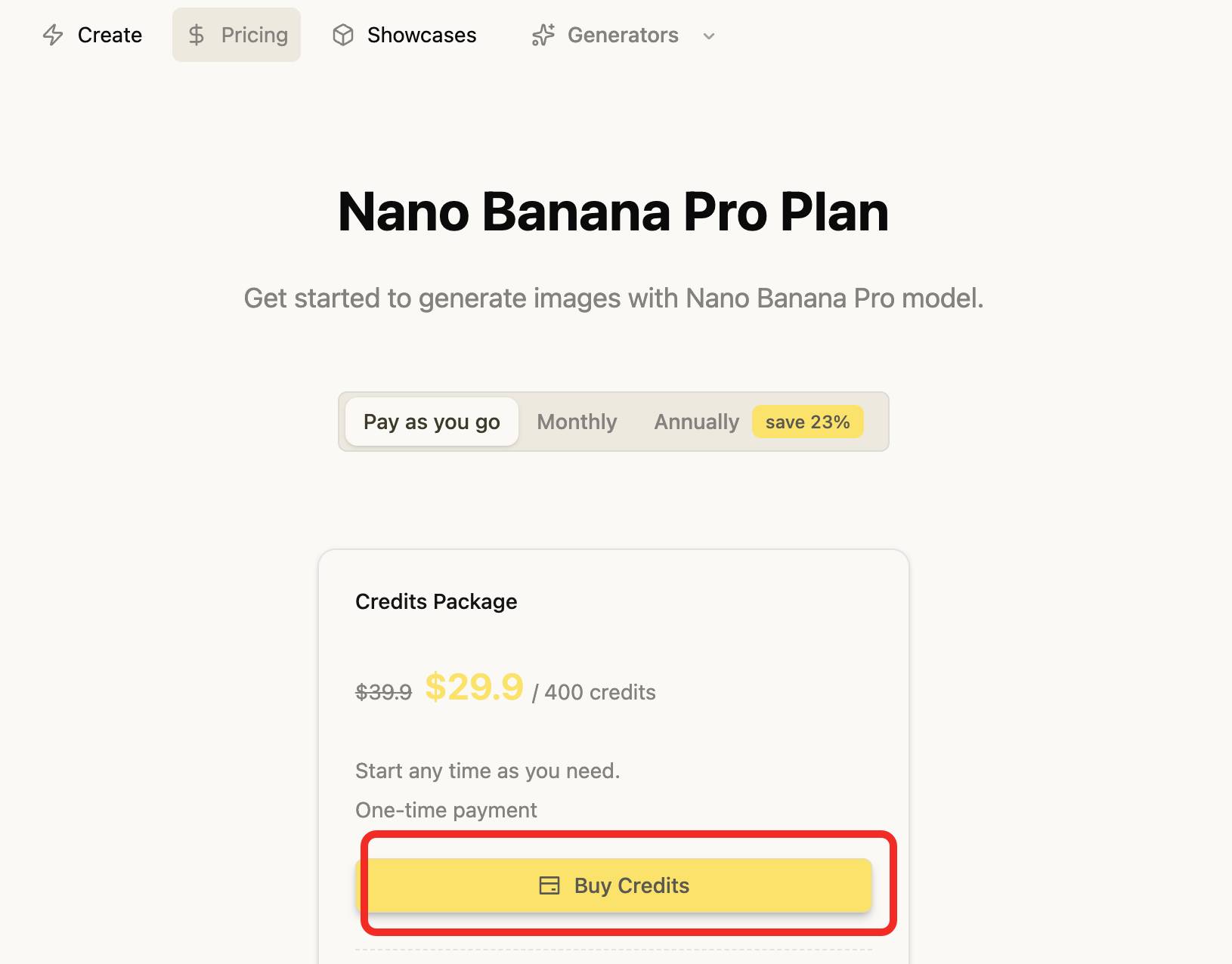 Credits Package(一次性支付):