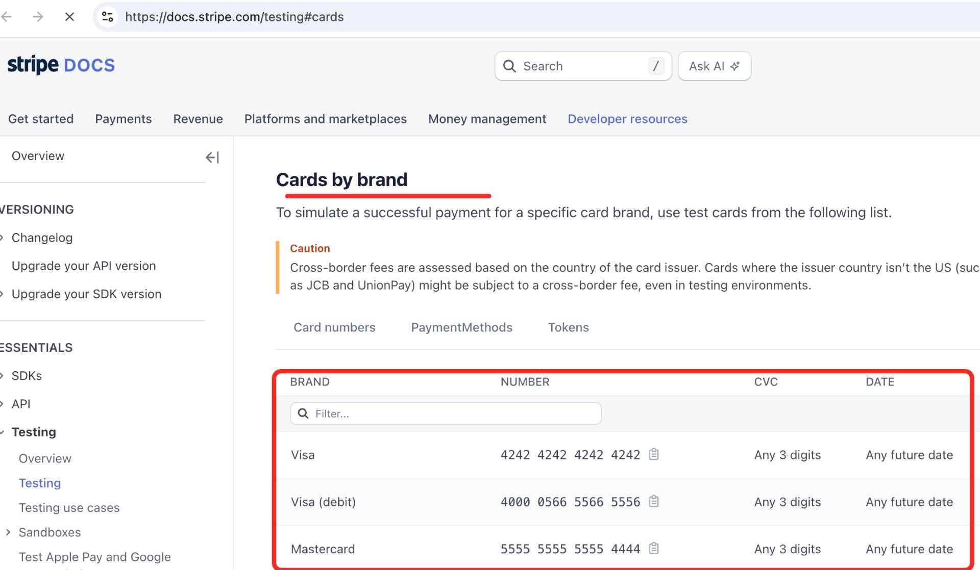 stripe的测试卡号