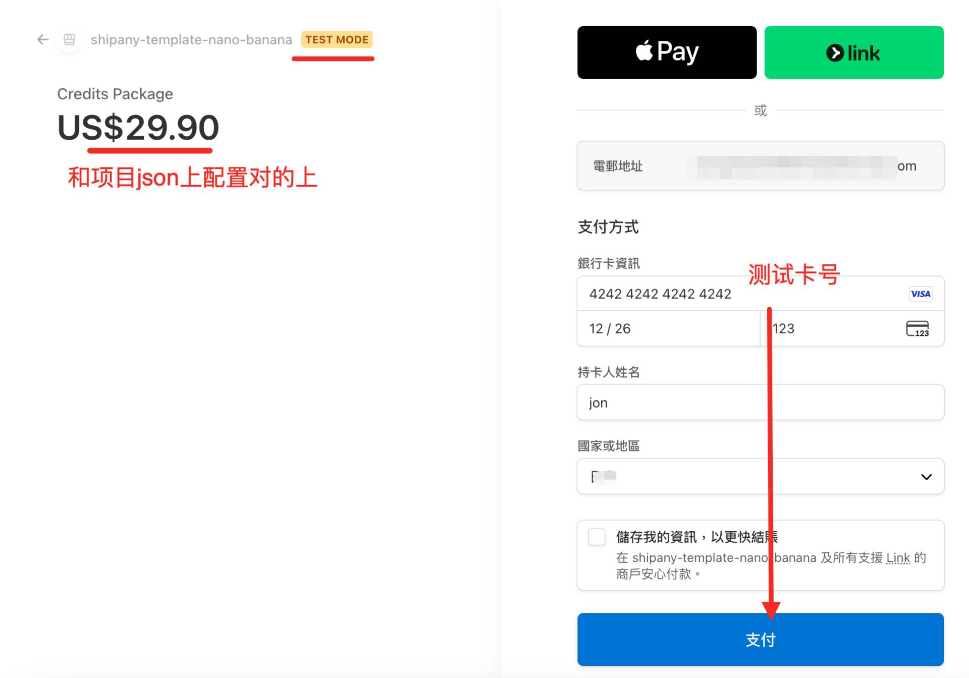 Stripe支持测试模式(方便本地调试) 和 生产模式(真实付费)