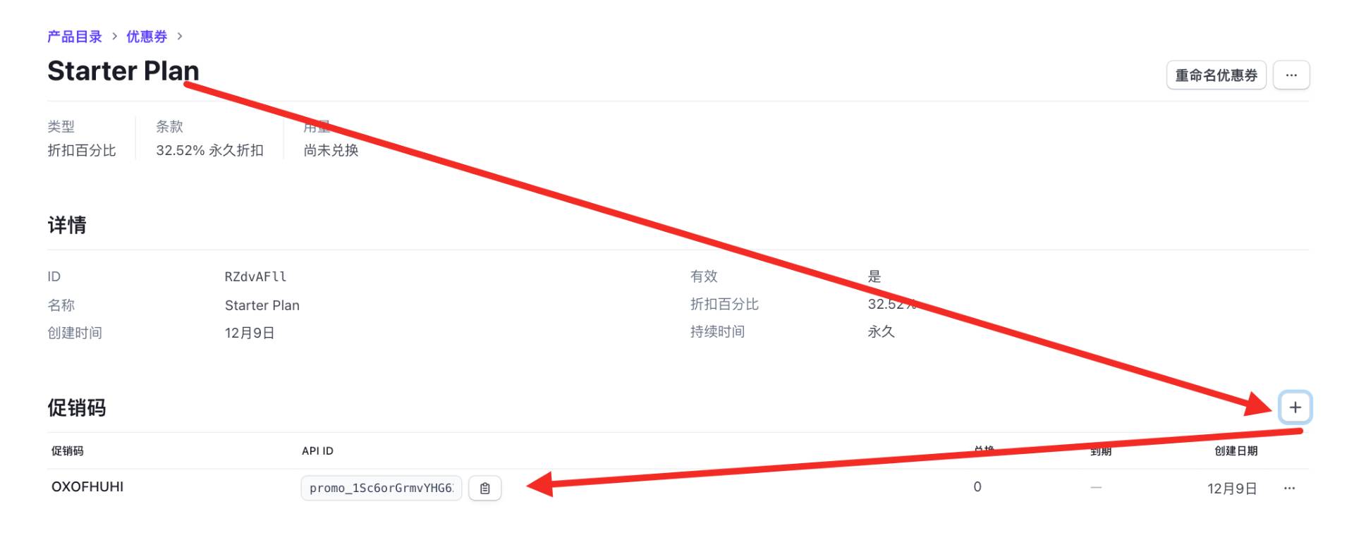 将促销码ID例如:promo_1Sc6orGrmvYHG623lvaqJFyG 先记录到记事本上;