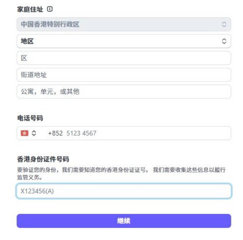 有些人会在这一步看到类似下面的页面,要求填写「香港身份证件号码」,示例格式为 X123456(A)(你发的截图就是这种)。