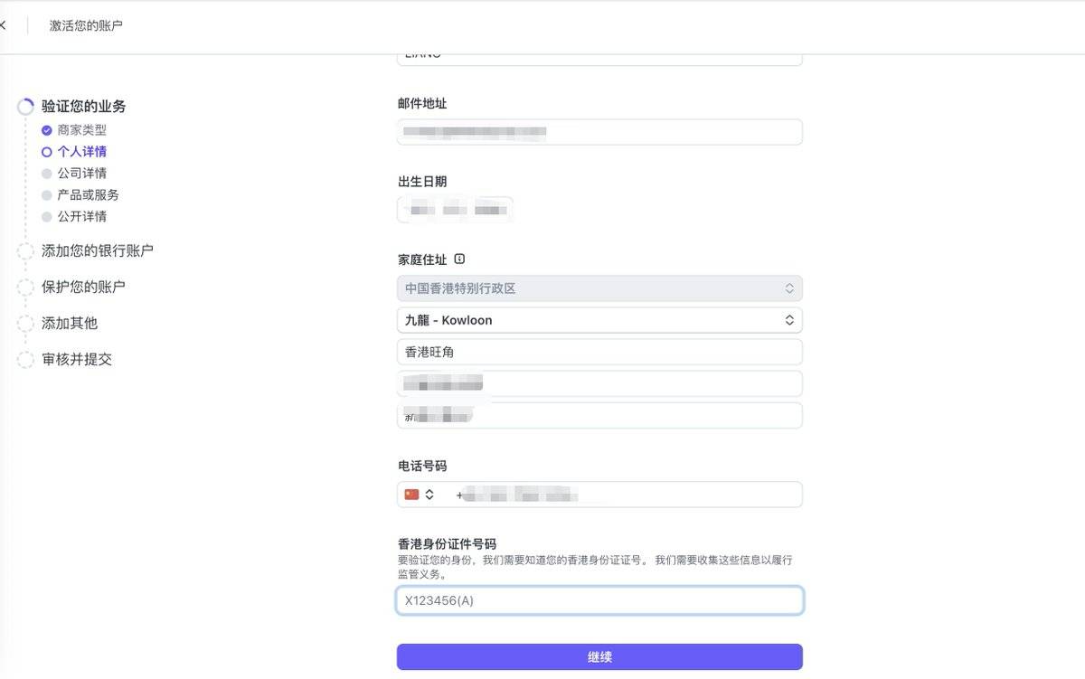 如何用大陆护照+个人港卡注册Stripe个人账户(2025年10月教程)