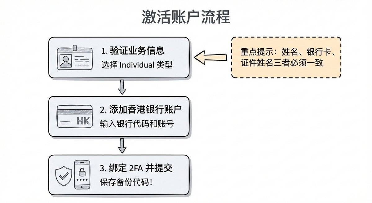 需要输入你的香港银行代码、分支代码及账号。确保账户状态正常,能接收小额转账校验。
