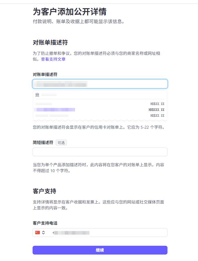 我们还需要添加公开详情,这个是作为账单和收据上需要展示的信息。