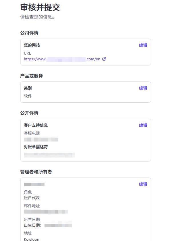 Stripe 对个人账户非常友好,但在填写时需保持信息真实有效: